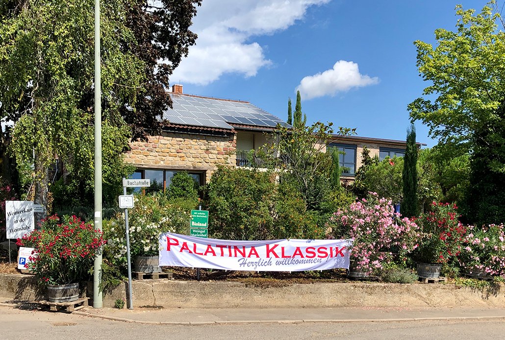 Nach einer Fahrt entlang einer der schönsten Passagen der Deutschen Weinstraße treffen wir im wunderschön gelegenen, neuen Anwesen des Weingutes Vögeli in Landau-Wollmesheim ein.